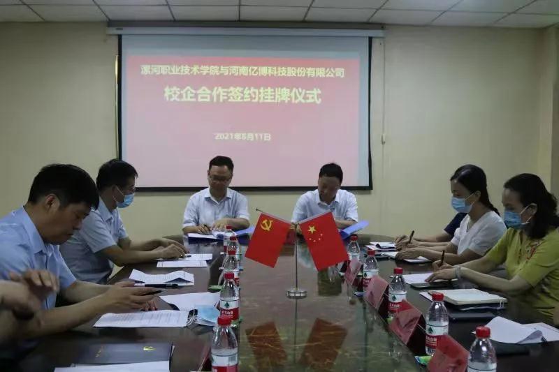 为扎实推进“万人助万企”活动,解决企业面临的突出问题和瓶颈制约,8月11日,在市委组织部等有关部门的推动下,漯河职业技术学院与河南亿博科技股份有限公司举办校企合作签约挂牌仪式。市委组织部副部长何志莹,漯河职院党委委员、副校长朱晓红,党委委员、组宣部部长缪俊岭,召陵区委常委、组织部长周俊伟等出席挂牌仪式。仪式由市委组织部副部长何志莹主持。