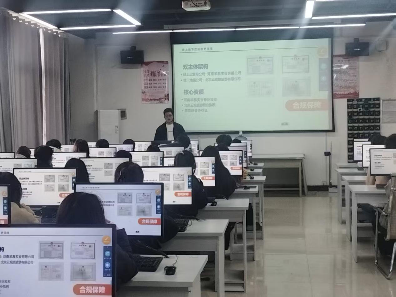 11月21日,学院携手河南羊群实业与北京云观旅游联合公司举办了“校企携手 实战赋能”专题培训,为企业与学生搭建了面对面的交流学习平台。培训围绕旅游直播的运营策划、讲解技巧、流量转化等核心内容展开,为企业项目进课堂奠定了扎实基础。