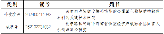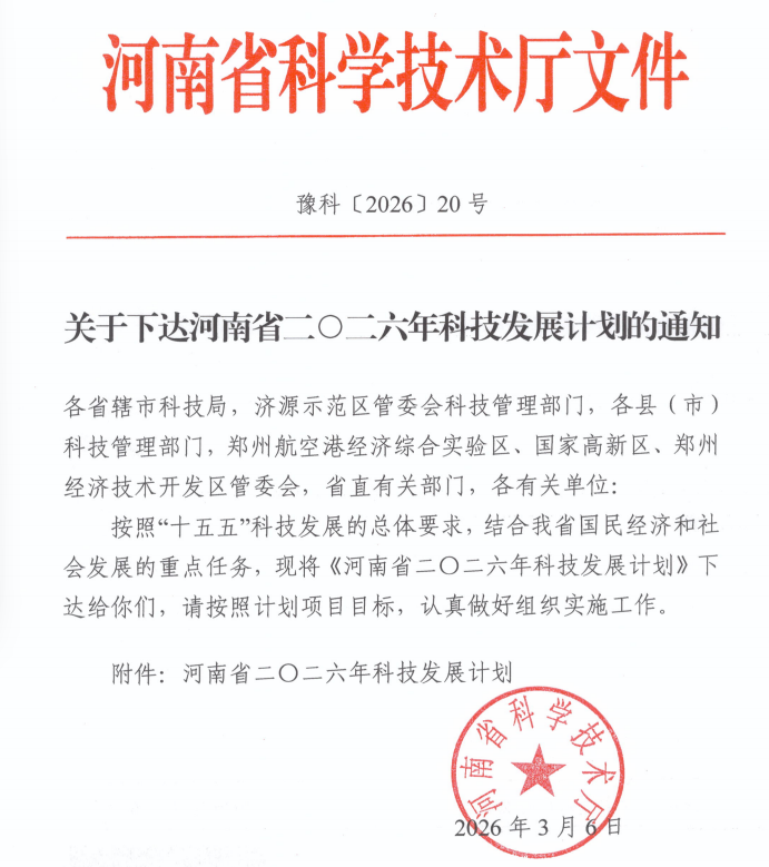 近日,河南省科技厅正式发布《关于下达河南省二〇二六年科技发展计划的通知》。我校两位老师申报的科技攻关项目《面向肉类新鲜度快检功能的金属氧化物超结构敏感材料的关键技术研究》和软科学项目《创新驱动战略下河南省低空经济产教融合协同育人机制与路径研究》成功获批立项,均获得经费资助。本次获批项目不仅为我校2026年度省级项目申报工作迎来了良好开局,也为深入推进“双高”建设、赋能地方产业发展提供重要支撑。