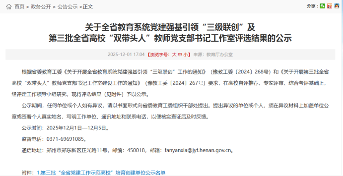 近日,中共河南省委教育工作委员会公示第三批“全省高校党建工作样板支部”培育创建单位名单,我校食品工程系教职工党支部成功入选。这是我校党建工作取得的又一重要成果,充分体现了学校基层党组织建设的扎实成效。
