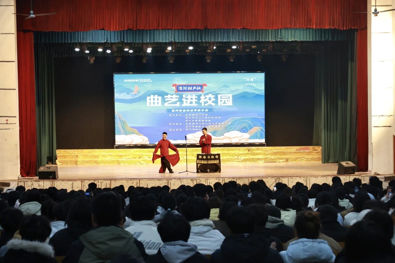 为深入学习贯彻党的二十届四中全会精神,弘扬中华优秀传统文化,近日,“曲艺进校园”专场活动在我校大礼堂成功举办。本次活动由共青团漯河市委、漯河市文化广电和旅游局、漯河市青年联合会联合主办,漯河职业技术学院承办,旨在通过曲艺艺术陶冶学生情操,传承文化基因,进一步丰富校园文化生活,提升师生人文素养。副校长吕爱华、程传蕊,共青团漯河市委副书记周巍,漯河市文化广电和旅游局四级调研员肖林生,漯河市五届青联...